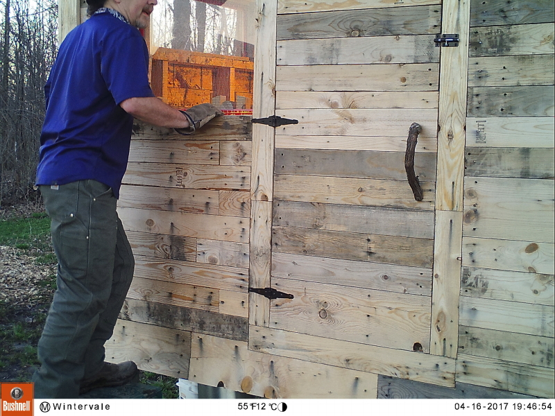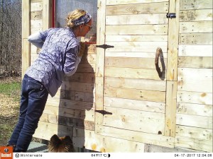 I think the trail cam was too close to the coop. It seemed to trigger upon the movement of the shadow across the front door. There were 400 images recorded over the 24 hour period! That was really only 200 triggers, because I had left the setting at 2 images per activation.