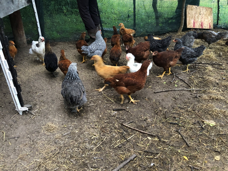 They haven’t received as much of this training as earlier batches we have raised, and it shows. The reactions were delayed and there was a noticeable lack of total buy-in from the group as a whole. With a bit more practice, it won’t be long until Cyndie frequently finds herself with a trail of birds following behind her as she strolls anywhere near where they happen to be hanging out.