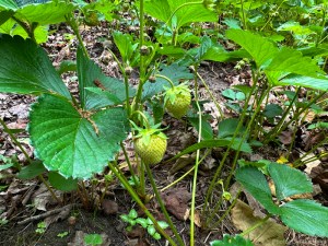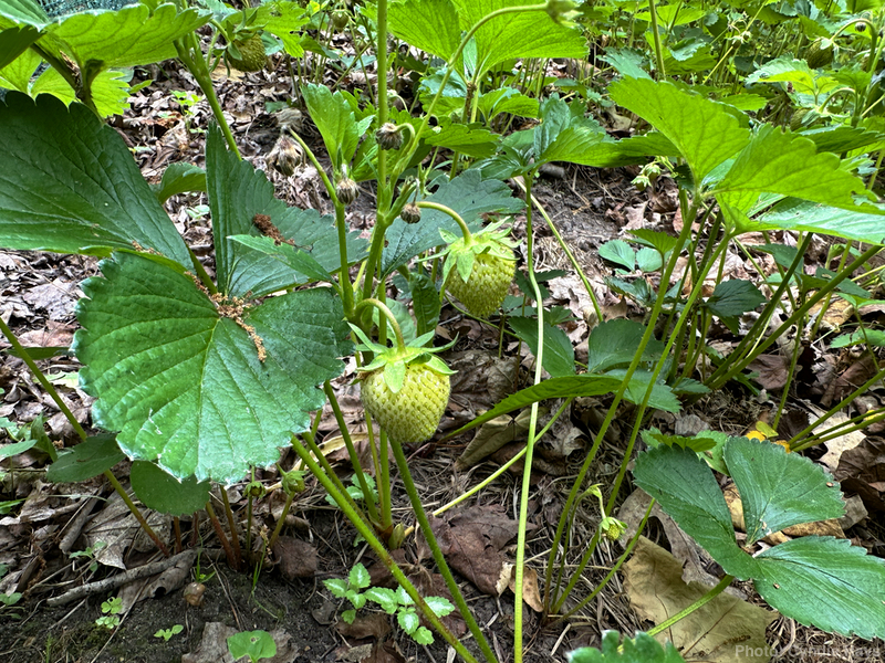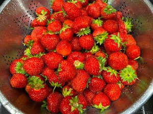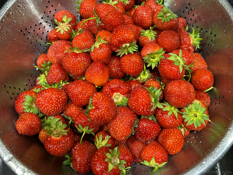 We came home with a rich bounty. Cyndie was wondering if her strawberry patch might also have berries ready to be picked.