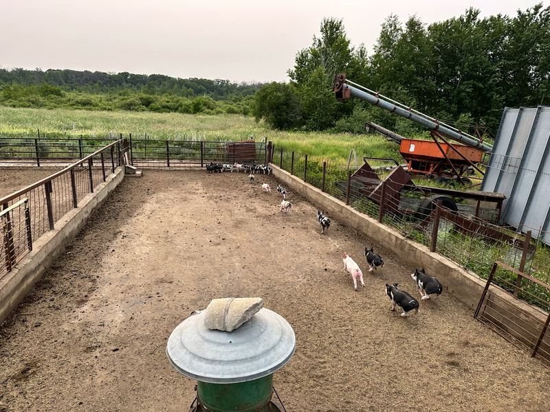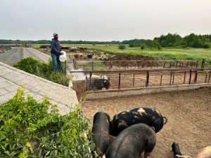 We started our morning at Walker Farms with George and Anneliese. I joined George for his morning chores. We fed chicks, checked on cattle, tossed feed to pigs, and moved chicken pens.