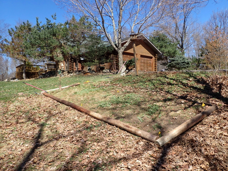 We plan to use old reclaimed wooden fence posts for a retaining wall that will create a terrace for a flat garden plot. There is space below it to add a second level farther downslope but we are going to start small. If all goes well, next year we can expand.