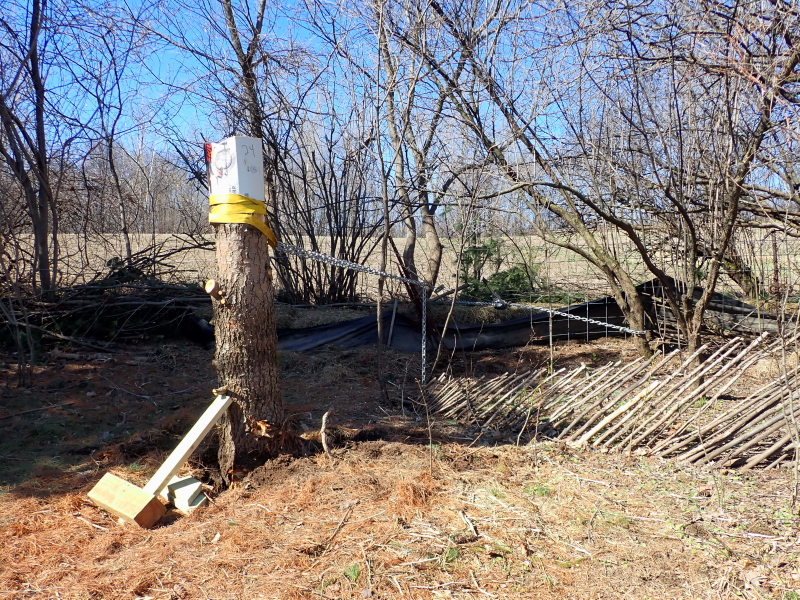 Before calling it a day and heading in to shower, I snuck down to hook up the come-along winch to the pine tree stump to see if it would stand up straight.