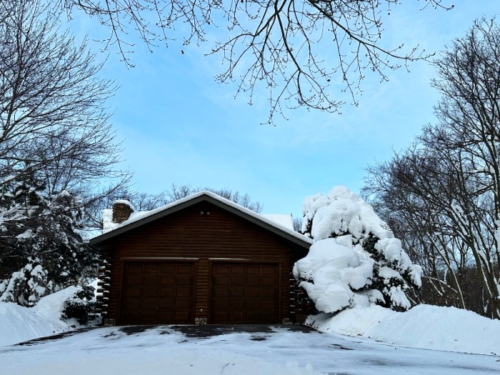 In the morning I got the drifts on the driveway and in front of the barn plowed away again. From there, I went directly to the spot in the photo above and then forged ahead onto the deck until only a small portion was left to go. I took a break when our kids arrived for a visit and helped carry in groceries they picked up in River Falls for us. Cyndie being able to shop for groceries online is saving me from one of my least favorite pastimes during these months of doing all the walking and driving chores for her.