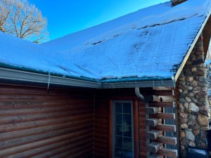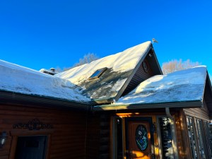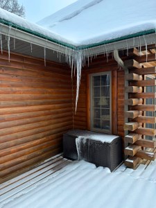 Arriving up here hours later, the first order of business was to shovel access paths to the doors. The driveway was plowed and caretakers had pulled some snow off the roof but no good attention had been paid toward clearing snow from in front of the doors.