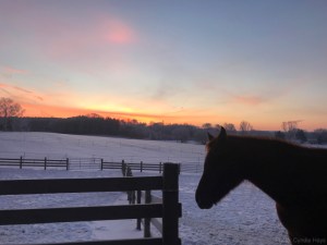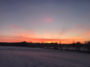 I couldn’t pass up Cyndie’s offer of pictures she took yesterday morning. One special thing about the short days of winter, morning chores align nicely with spectacular views of predawn light shows.