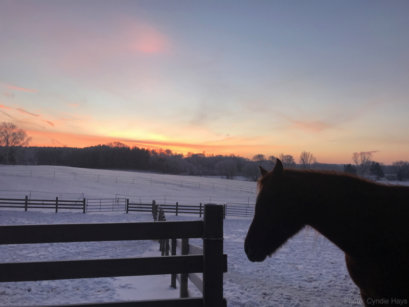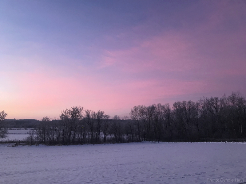 I couldn’t pass up Cyndie’s offer of pictures she took yesterday morning. One special thing about the short days of winter, morning chores align nicely with spectacular views of predawn light shows.