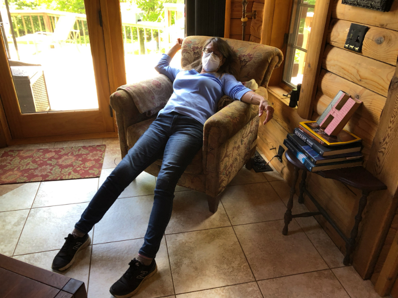 Out of an excess of caution, Cyndie chose to wear a mask when she got home until she verifies by test whether she was feeling crummy because of the dreaded virus or simply some other easily possible reason. Allergies? Travel fatigue?