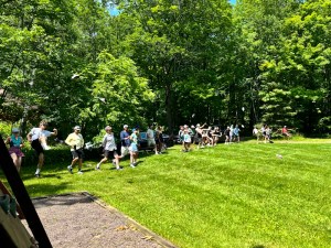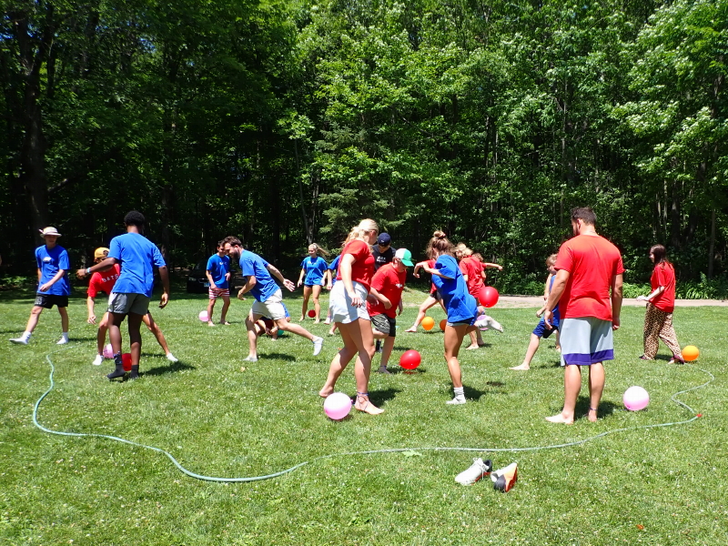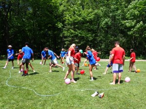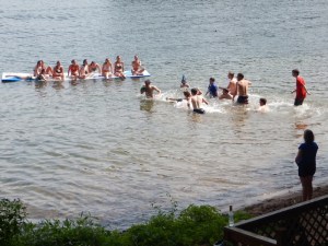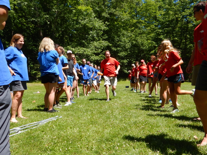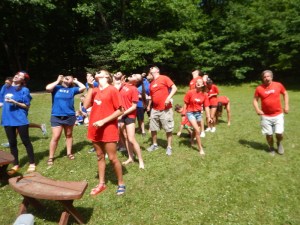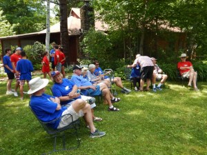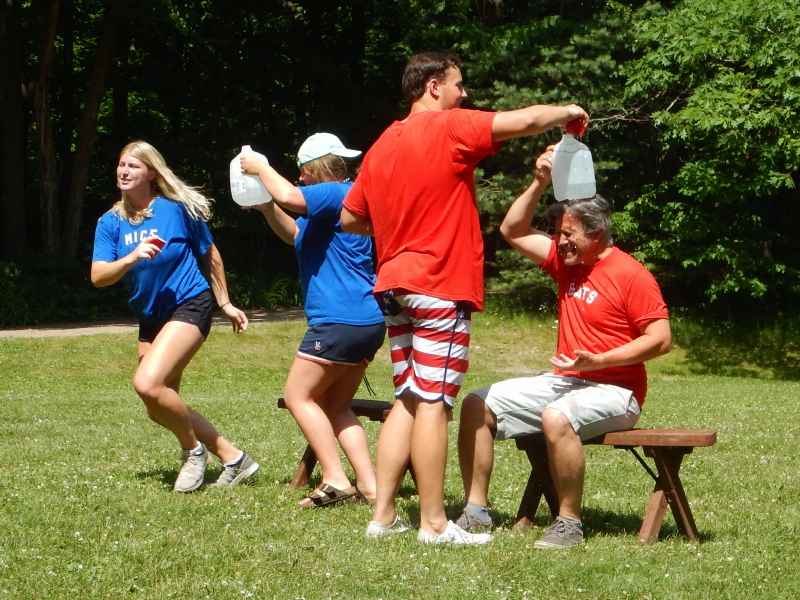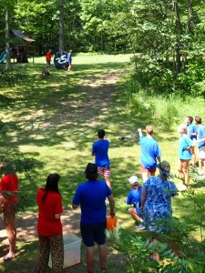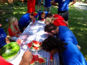 It’s all fun and games at the lake this weekend. The 4th of July celebration at Wildwood is a tradition of classic competitions between teams of bats (blue shirts) and mice (red shirts). Under a spectacular sunny summer sky yesterday, we waged battle of kicking shoes, eating watermelon, tossing water balloons, a sponge brigade, a scavenger hunt, and moving a greased watermelon across a goal line in the lake.