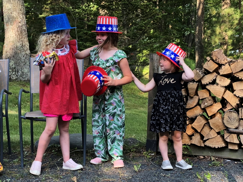 Today, the seven families of our Wildwood Lodge Club will congregate at the lodge for a flag raising and National Anthem followed by a parade up and down the driveway. Then, the games commence. Fierce competitions of coordination and silliness between teams labeled “bats” and “mice” as we toss balloons, kick shoes, and gobble watermelon.