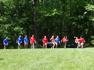 Saturday, in celebration of the mid-week 4th-of-July holiday this year, we broke out the red “bats” shirts and the blue “mice” shirts to split the community into two arbitrary teams for a mostly typical array of challenges for dominance.