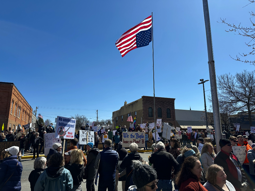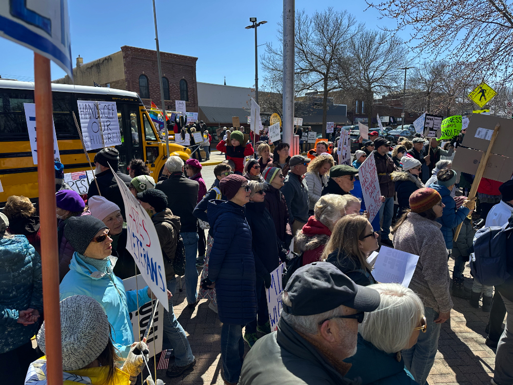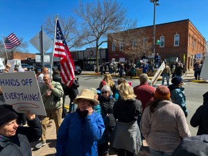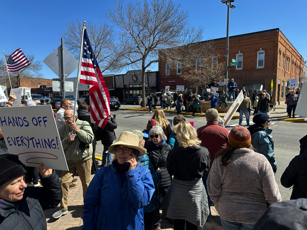 While people robustly expressed their deep dissatisfaction with everything the current administration has been doing, passing cars continued to honk in support of the “Hands Off!” theme. This occasionally triggered those gathered on the other side of the road to start chanting, which drowned out some of the words of the speakers, but we always got the gist of each message.