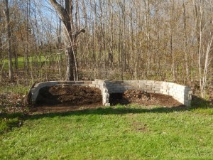 From there, we headed down to the labyrinth, where Cyndie pulled weeds and I reassembled the fallen blocks around our compost and wood chip locations.