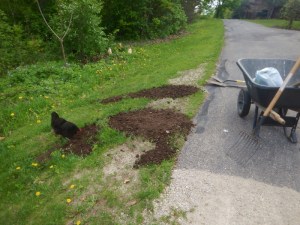 The constant presence of the hens is both entertaining and annoying. I could do the job twice as fast if they weren’t so in the way, but it wouldn’t be near as much fun.