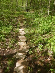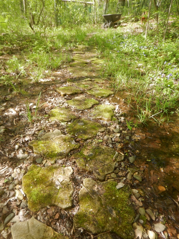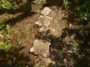 Originally, I laid it out with a wider spread, but after walking on it and navigating the ATV on the trail, I’ve changed to more of a single file pattern. Simple stepping stones is all that’s needed in keeping up out of the sloppy muck.