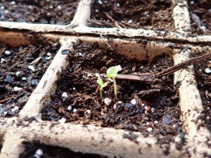 The first peek of a sprout was from one of her lettuce seeds. I’ve never seen what a lettuce plant looks like when it goes to seed.