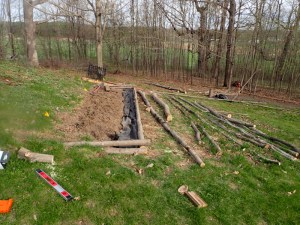 After that, a much larger dig is awaiting up by the house. Cyndie wants to plant a produce garden on a slope that will require terracing. I thought I was just going to be putting in some short retaining walls but the project now threatens to involve critter proofing with buried hardware cloth and perimeter fencing.