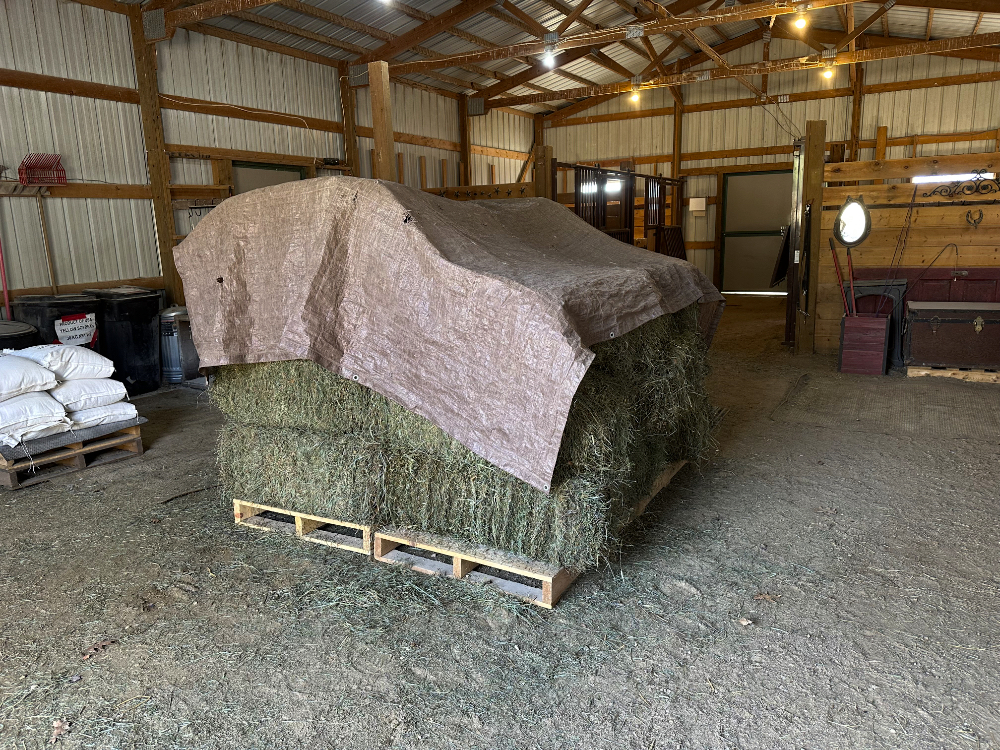 That method doesn’t work for our hay. Since the bales arrive in large numbers all at once, we fill up the hay shed, and the last bales stacked become the first bales used. The routine I’ve settled on requires that we use up almost all of the last delivery before ordering more, which gets a little nerve-wracking since we don’t have complete control over when the next delivery can happen or how fast the horses will be burning through bales any given week.