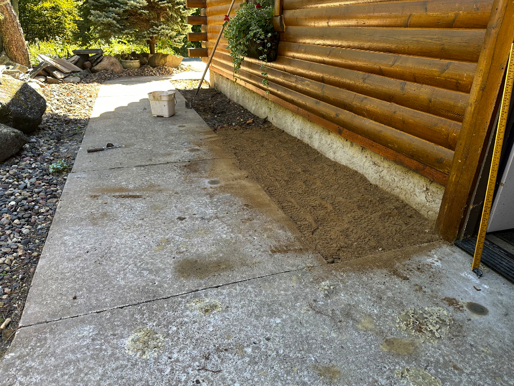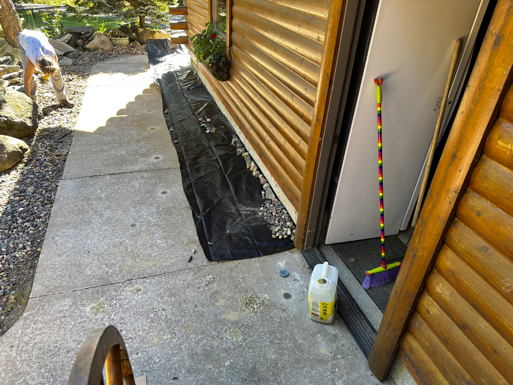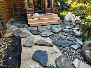 We had to wait all summer for my favorite concrete lifting company to fit us into their schedule, which put our re-landscaping of the front walkway on hold. As soon as they finished their work, Cyndie and I dug into finishing what we could of the project while coughing our lungs out.