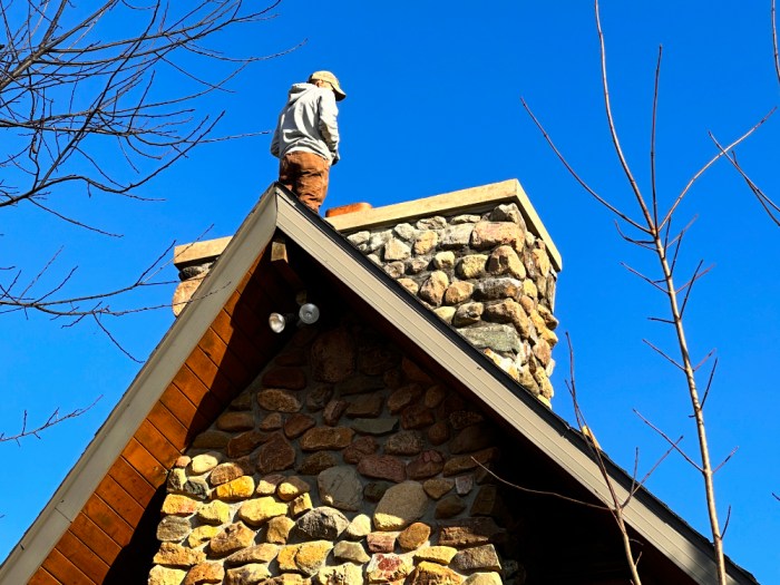 You know what else feels lovely? Having a long-awaited project completed. We’ve known for a few years that the crown on top of our chimney was compromised, the cement cracked and allowing water penetration when it rains and snows. The kind of issue that was invisible to us on the ground and could have lingered unknown for a long time before it emerged as very costly structural damage to the whole chimney.