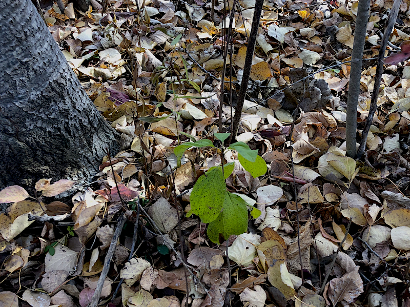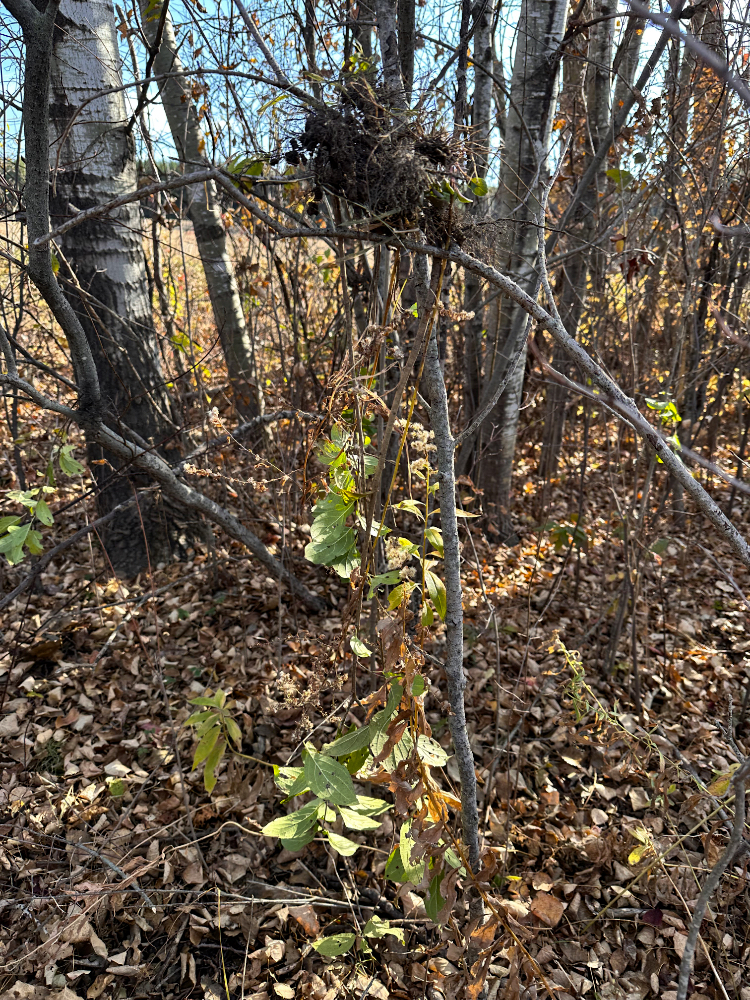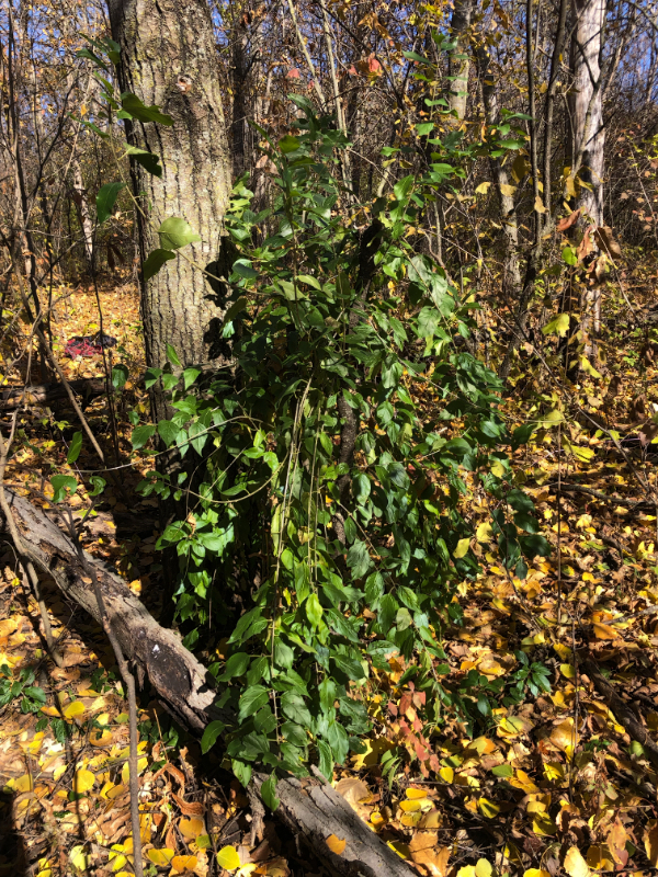 It’s not foolproof though, because I always seem to find a large enough tree that reveals I must have missed it the year before. I think the main reason for this is buckthorn is not the only growth that still has leaves after the majority of the forest turns brown and barren. There is at least one other bush that confuses my hunt.