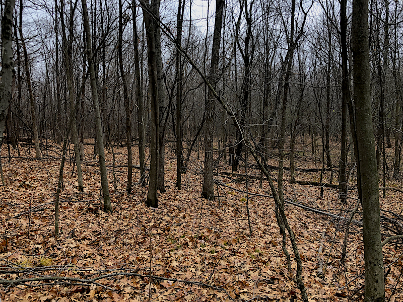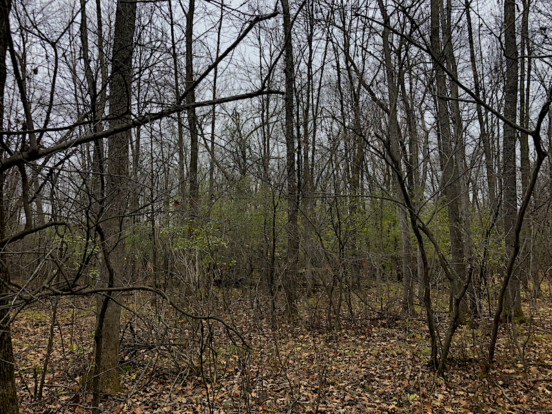 When I look into the trees on my neighbor’s unmanaged land, there is an obvious spread of green growth, but ours holds just a fraction of that, only a few of which are the deep green buckthorn.