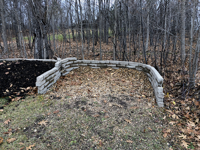Cyndie has already succeeded in decimating the store of chips, distributing them far and wide for mulch around small trees and plants in the labyrinth and beyond.