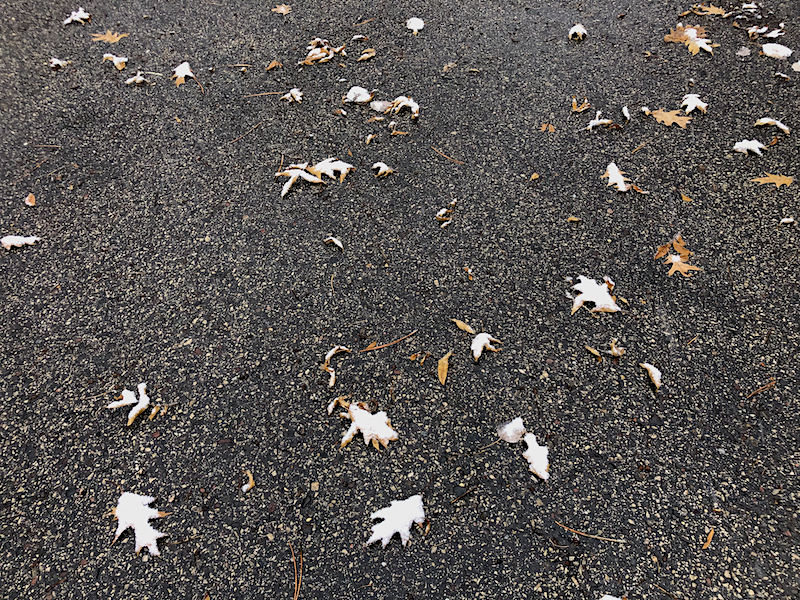 Yesterday, the driveway was still too warm to be covered by the first measurable amount to fall, but the leaves weren’t.