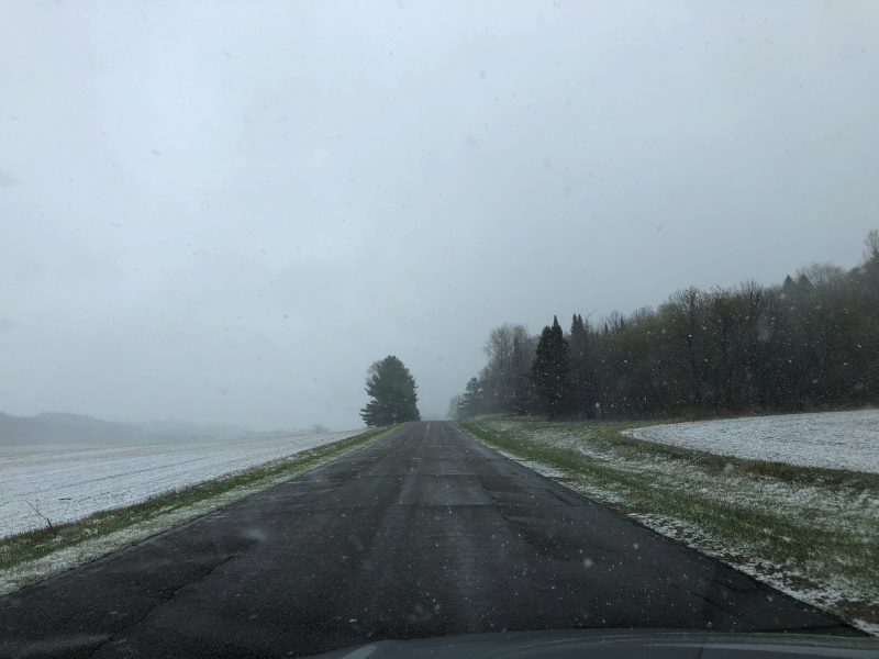 As I reached the roads near home toward the end of my commute, snow accumulation was visible in the fields. Talk about a cold reception.