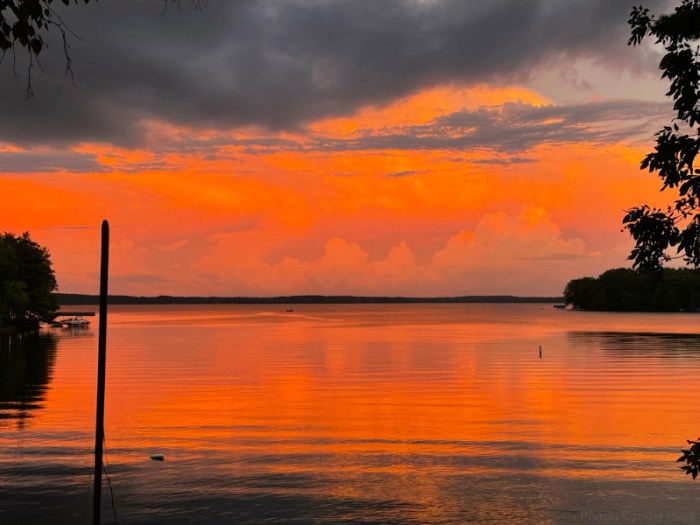 As the rotation of the earth moved the sunlight closer to our western horizon, the storm in the distance began to glow and bounce vivid color off the lake for a whole nother visual presentation.