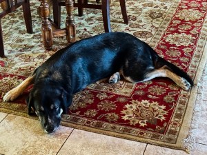 He seems pretty pleased to be back in the comforts of his previous territory and free from the constant distractions of other canines needing to be assessed. One clear thing the trainers noted was his constant need to determine the potential threat of the various other dogs coming and going at the kennel. That is not an unusual behavior in a dog but it did clarify that inviting visits with other dogs at our place may be a challenge.
