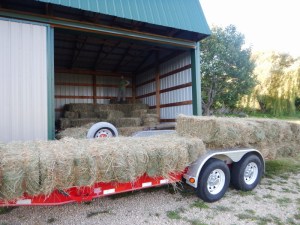 It was as if our full day had barely gotten started. I was able to connect with our next-door neighbor to borrow his large trailer for hauling hay. Our first source of bales reported a shortage of availability, due to a new client who required 4000 bales. Five minutes after that sorry news, he called back to say his brother had bales we could buy, but needed to get them out of the wagon by the end of the day.
