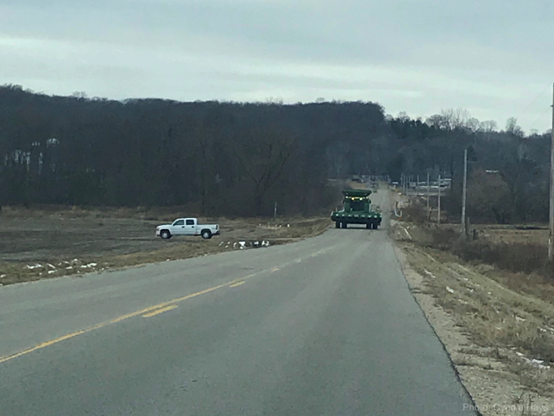 On a section of one of our county roads with barely a shoulder to speak of, we came face to face with a combine that almost filled the full width of both lanes.