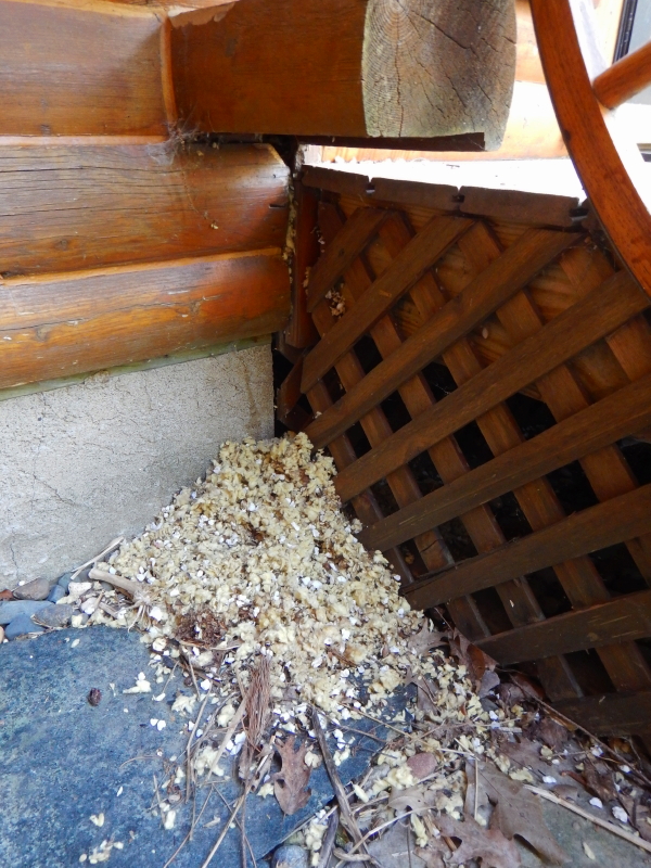 Some pesky critter is building a cathedral in my home and he/she/it is removing a LOT of insulating material in the process. I shudder to think what the space looks like in there.
