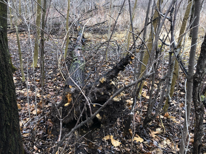 I walked around to get a different angle and discovered the hole created by the toppled trunk was completely full of standing water.