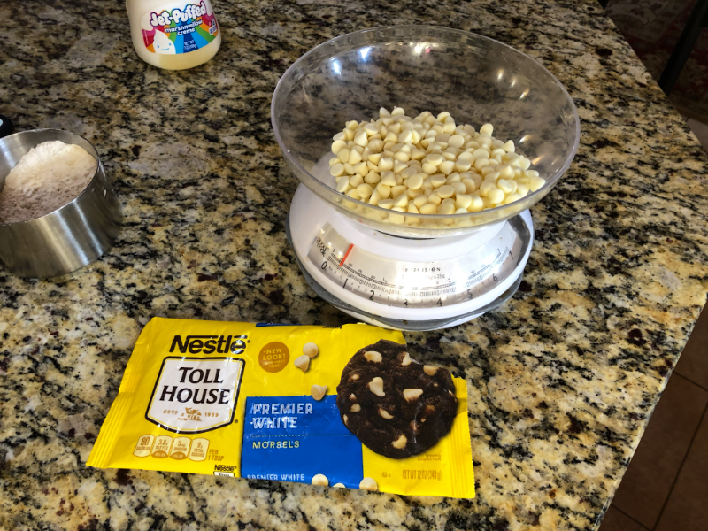 While attempting to make some really delicious pumpkin fudge last week, Cyndie was aghast to discover that the weight of Nestle white chocolate chips did not equal the 12 ounces marked on the package. After pouring out two packets and placing them on the scale, she was 4 ounces short of the required amount for her recipe.