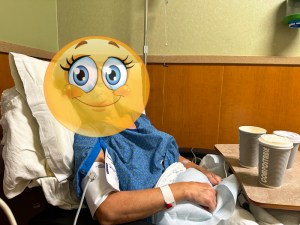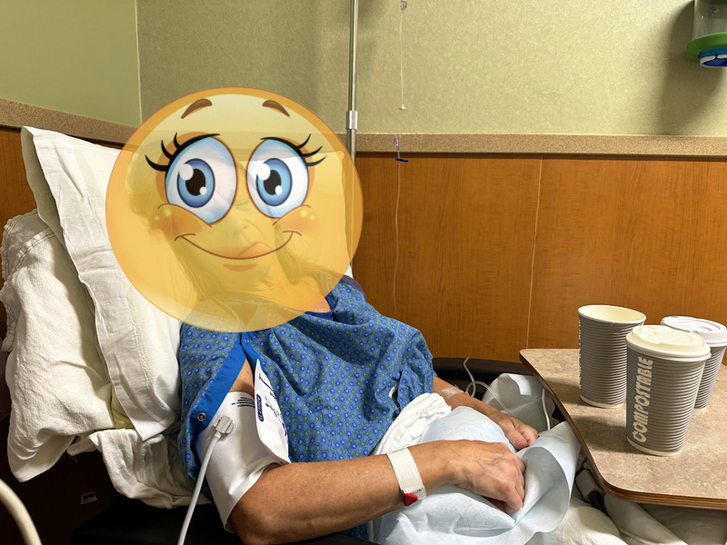 I snapped a photo of Cyndie in the recovery bay post-surgery.
