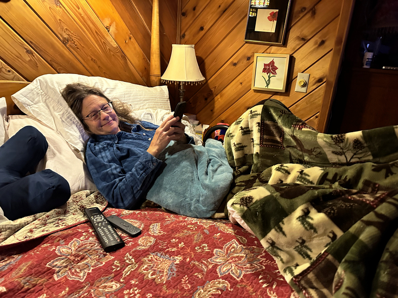 It was almost “just another Thursday” except for the fact Cyndie was only one day away from surgery on her ankle. Her extensive experience with the routine of recovering from surgeries makes her a pretty easy patient to watch over. She has been in good spirits throughout the whole process, surviving the first night with only minimally interrupted sleep from pain.