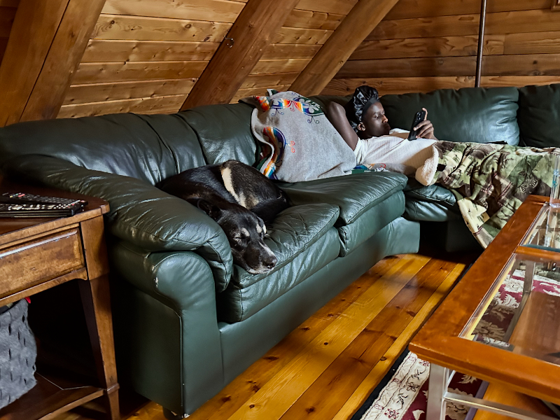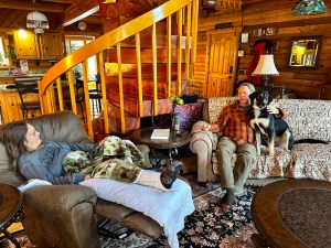 Asher is very excited to find that Cyndie is back in his life again. When the garage door rumbled to life last night, Asher sprung to his feet from a dead sleep. We were up in the loft watching Minnesota’s State High School Hockey Tournament. Well, I was watching. Asher was napping.