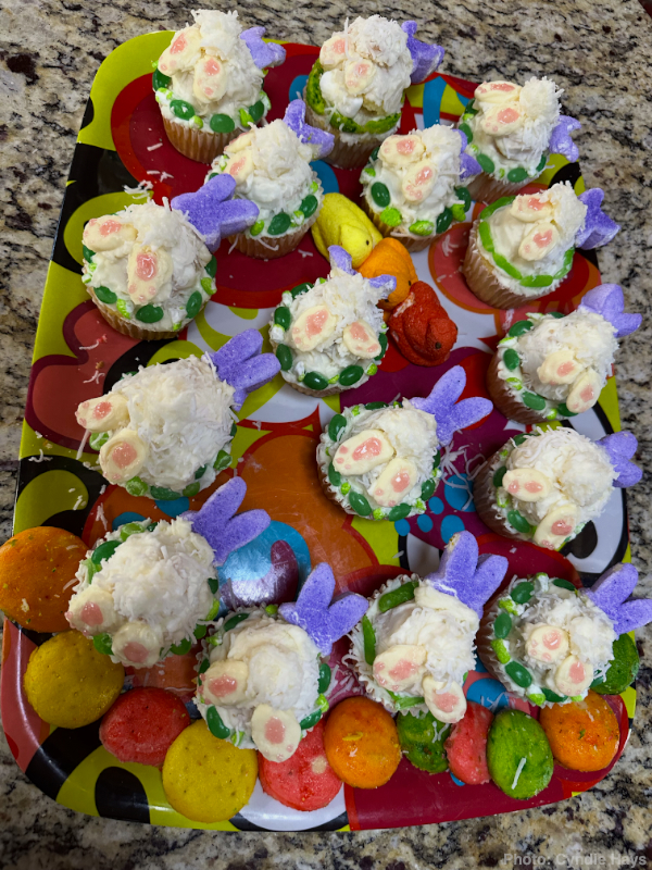 Yesterday’s Easter brunch deserves additional press. Did I mention Cyndie made EVERYTHING with one exception of purchased meats? That is why I was smelling tempting aromas for several days. Read the list below, presented in no specific order, and try to imagine fitting a little taste of each offering on your plate or in your stomach during one brief brunch event: