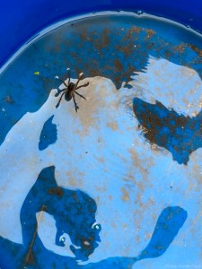 I’ve gladly accepted this crazy image she captured of a wolf spider in a bucket of water.
