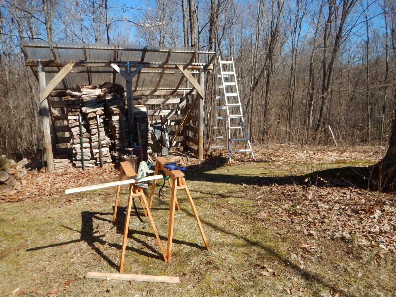 Especially in the face of some wind gusts that were strong enough to break loose a roof panel on our wood shed. Yesterday, there was dead calm in the morning, so I took advantage of the perfect weather to work on replacing the busted section.