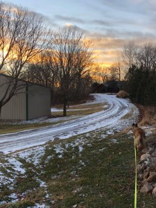 Yesterday was the warmer of the two days but all that accomplished was enough melting to turn the snow to ice where the tire tracks packed it down and we’ve run out of warm days. Not only will the temperature drop, today it is expected we will receive between 4 to 8 inches of snow that will cover the icy mess on the driveway.