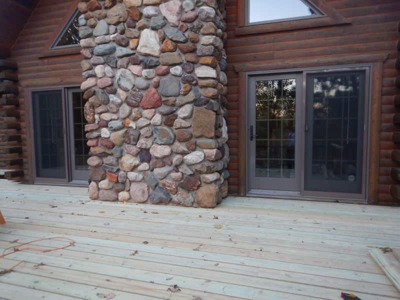 However, there are complications. Several are related to trying to fit things into pre-existing nooks and crannies without completely tearing out the framing around doors or the railing posts. We also spent a fair amount of time tailoring the fit of board thickness around the stone chimney.