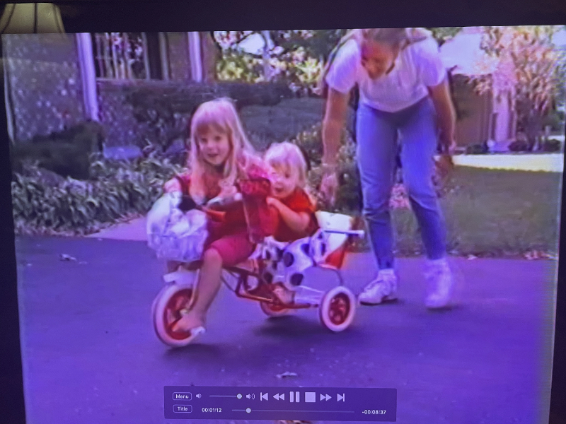 After dinner last night, Cyndie sprung a surprise on me of some DVDs she discovered. Neither of us remembers getting old VHS tapes of home movies we’d recorded converted to digital, but there they were.