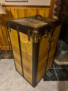 After I used the trunk to store my clothes and valuables for decades, I passed it down to Julian. He used it for a while but then asked us to store it in our basement for him. I think the Historical Association is a better long-term place for the trunk to be kept.