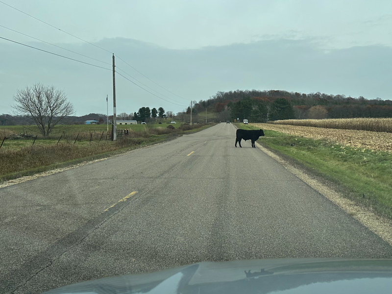 Yesterday, a steer blocked my lane as I was returning from dropping Asher off at his play date and picking up groceries.