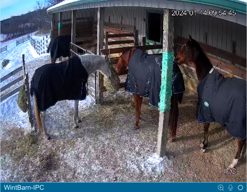 The horses handle it as stoically as they always do against weather extremes. They were pretty much all business this morning as they consumed their feed pellets while I was cleaning up the incredibly hard frozen rubble of manure from around their feet.