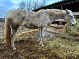 A Veterinarian is scheduled to be here today to administer shots to the horses and hopefully file down their teeth. We think Swings, in particular, is not chewing well, most likely due to sharp high spots that can develop on their teeth. She has also been “quidding” a lot, which is dropping partially chewed wads of hay from her mouth.