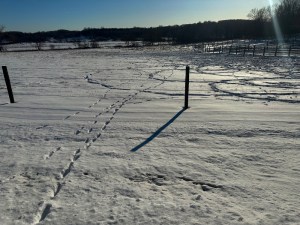 In the past, they have been slower to cover so much ground after a snowfall. One side or the other of the paddocks will show little to no tracks for days. This morning their tracks reveal they had been moving around more than usual in the last 14 hours.