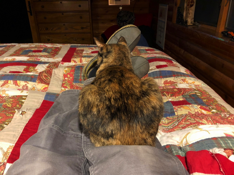 I’m doing my best to keep up with everybody else’s progress and enjoying increased mobility and reduced pain with every passing day. ‘Nita does her best to keep my legs stretched out and warm for me. I think my tight hamstrings do me no favors at avoiding problems with my lumbar discs.